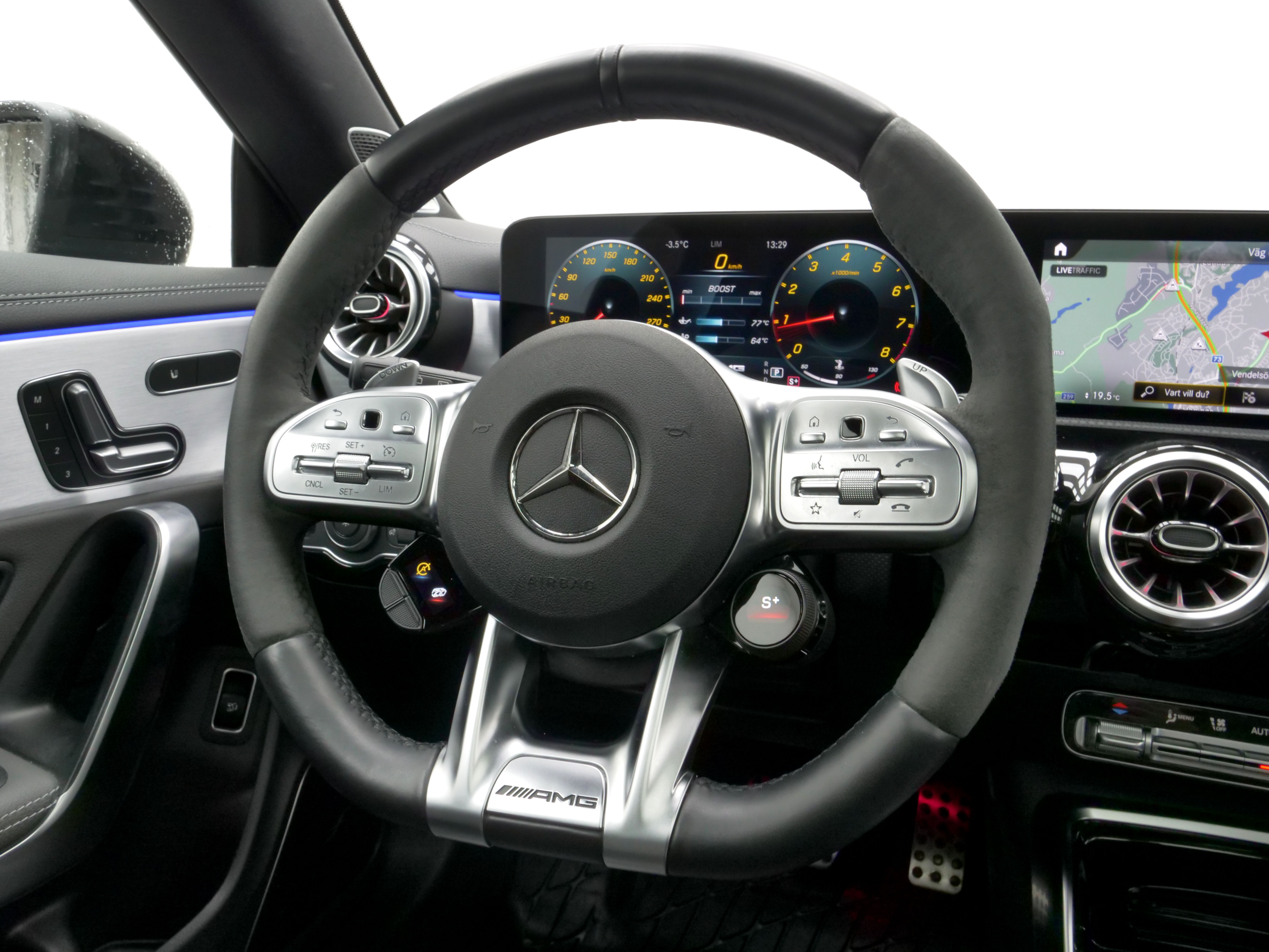 Nu har vi fått in en snygg & välutrustad Mercedes-Benz CLA 45 S 4Matic med 500hk från 2021. Ett svensksålt exemplar som är fullservad enligt serviceplan. Snygg i sin svarta metallic kulör kombinerat med sina 19"AMG Performance Fälgar & svarta läder/alcantara säten.